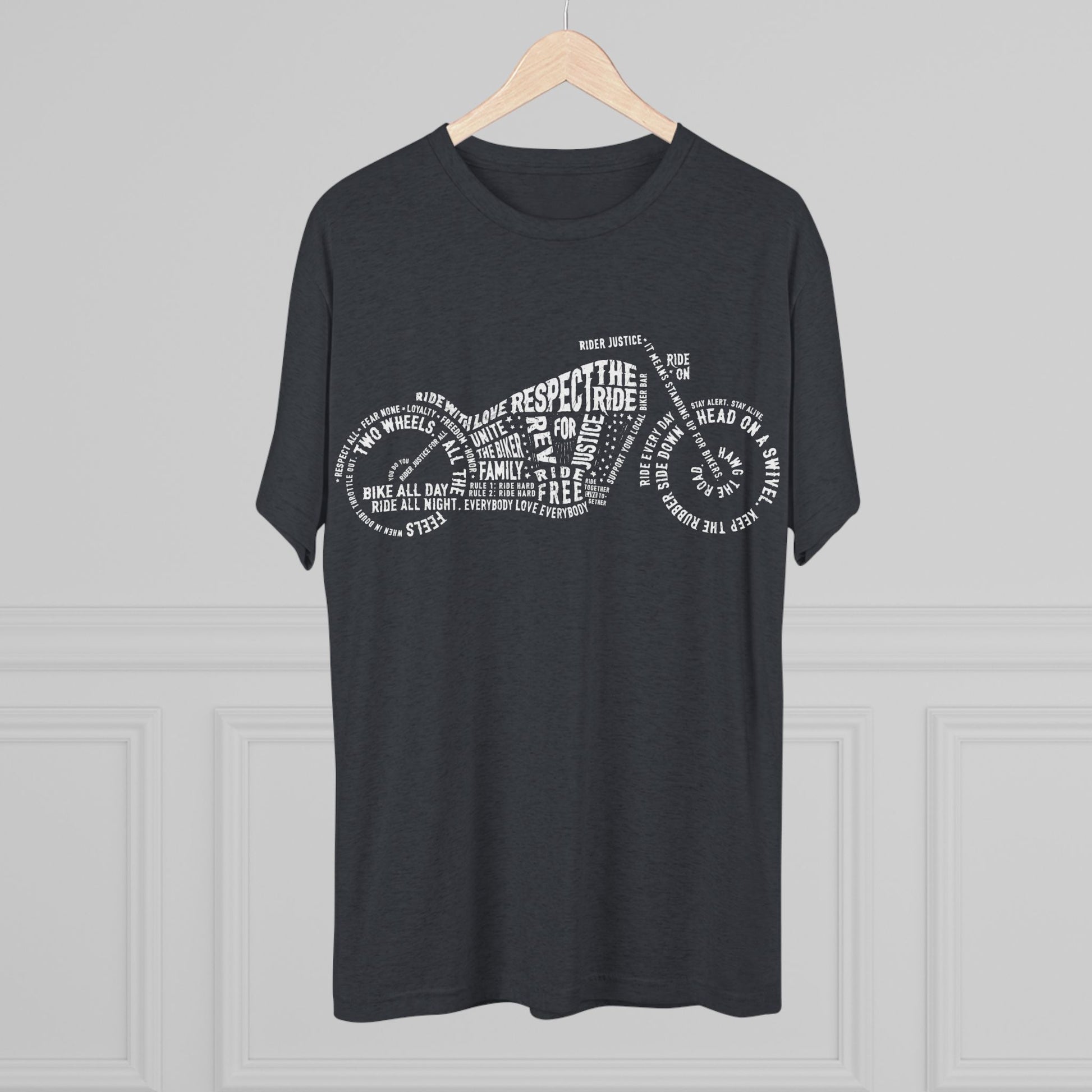 This high quality regular fit tee has a casually elegant vibe. Additionally, unbelievably soft tri-blend fabric makes it extremely comfortable - once put on, impossible to take off.
